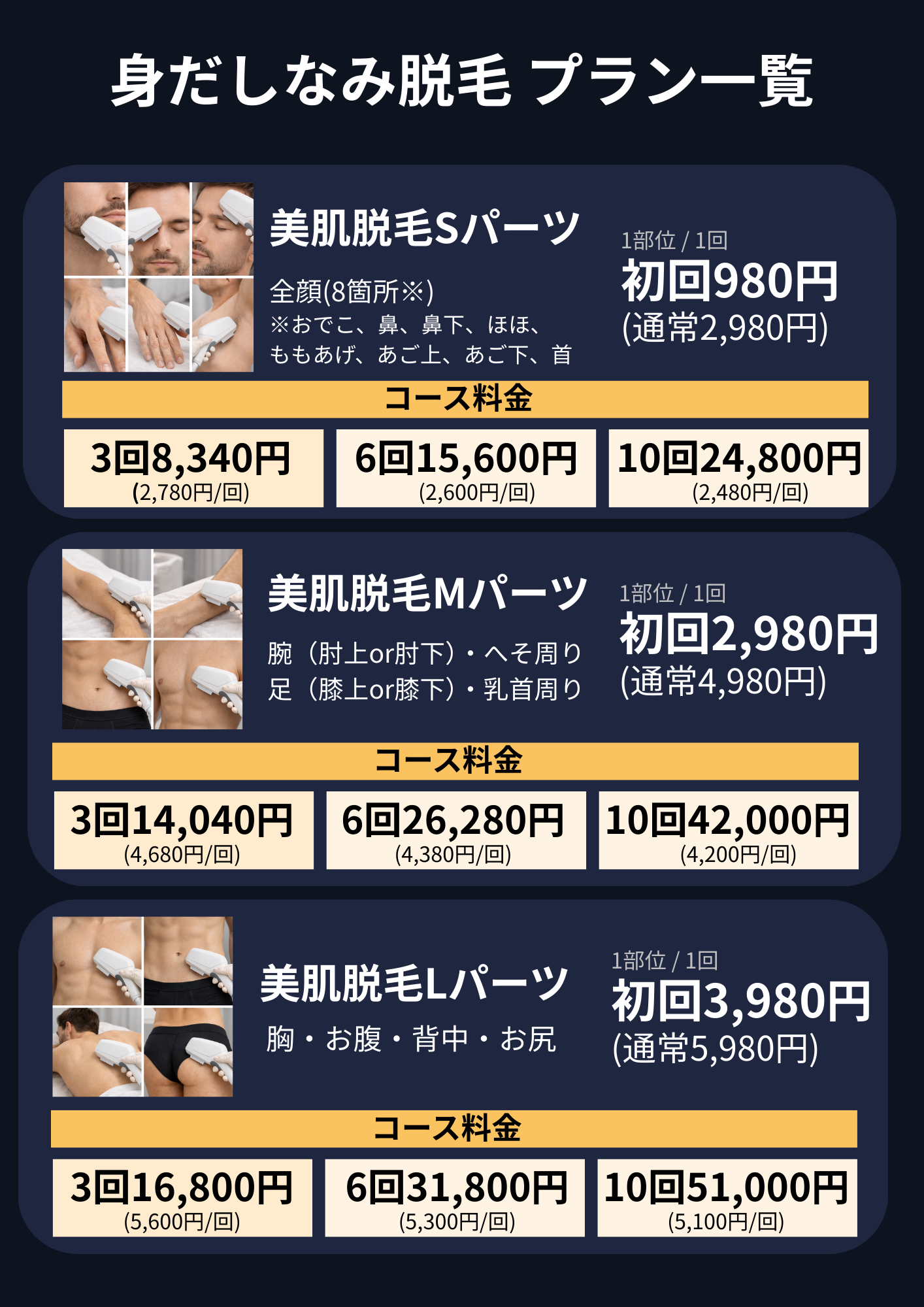 脱毛・フェイス・身だしなみまで。
