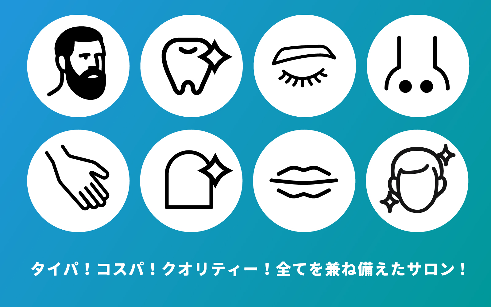 きれいめタケルでは、必要なケアを1つのサロンでまとめて完結。